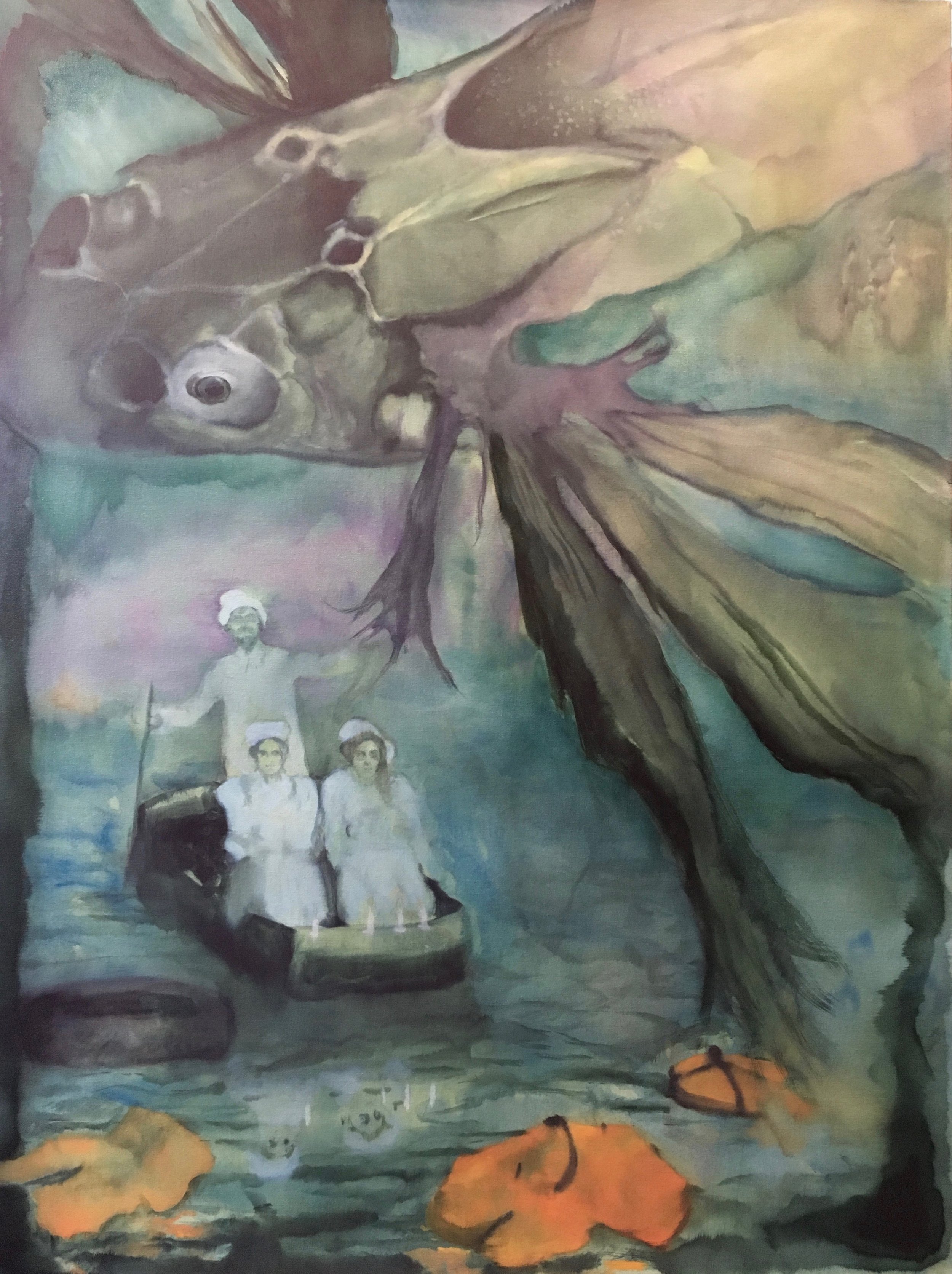 'The Boat People', 2018, oil on canvas, 125 x 90 cm.